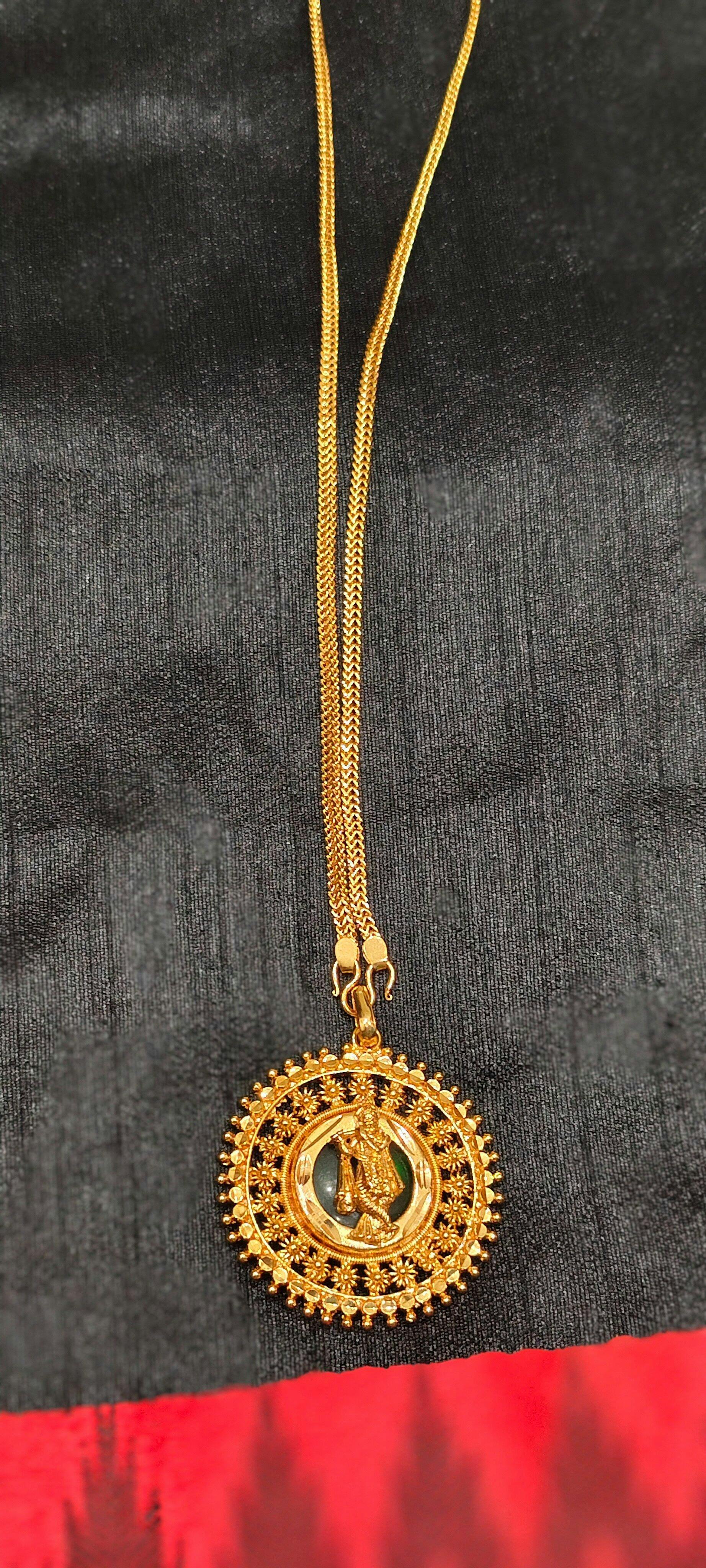 The ornate circular frame glows like a golden halo. Designed to add a touch of royalty to your jewelry collection.